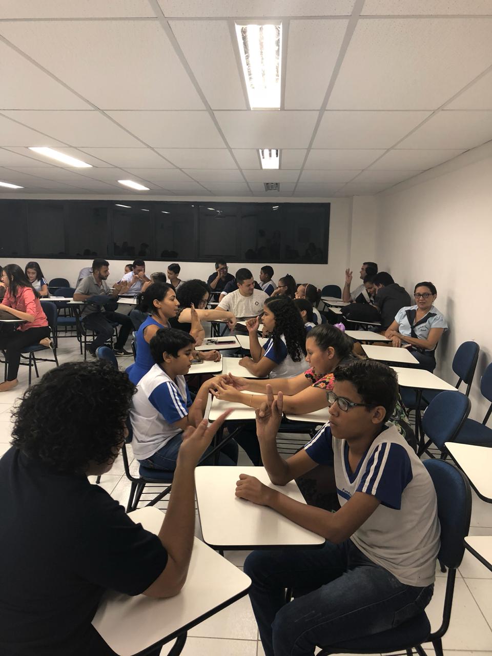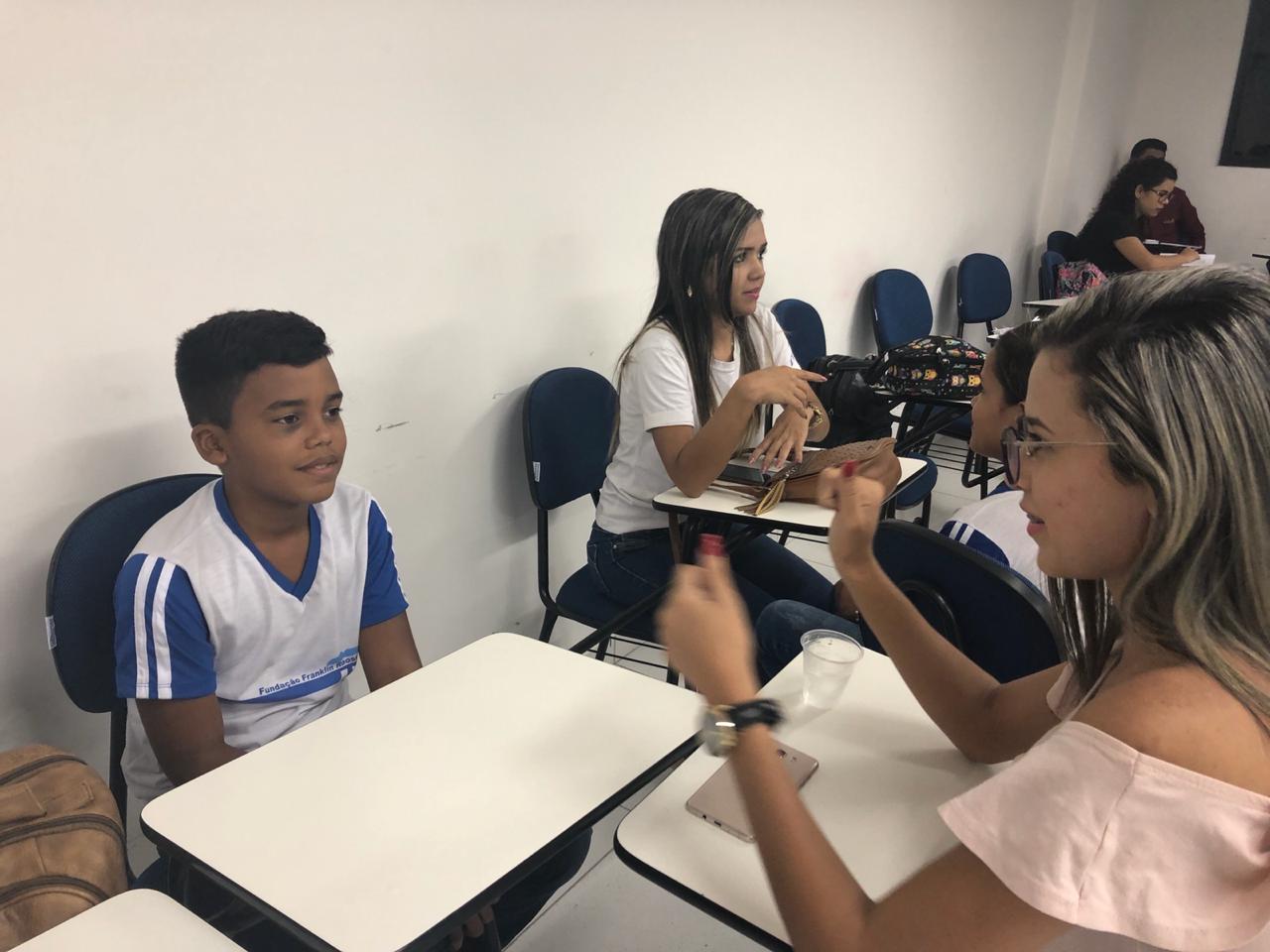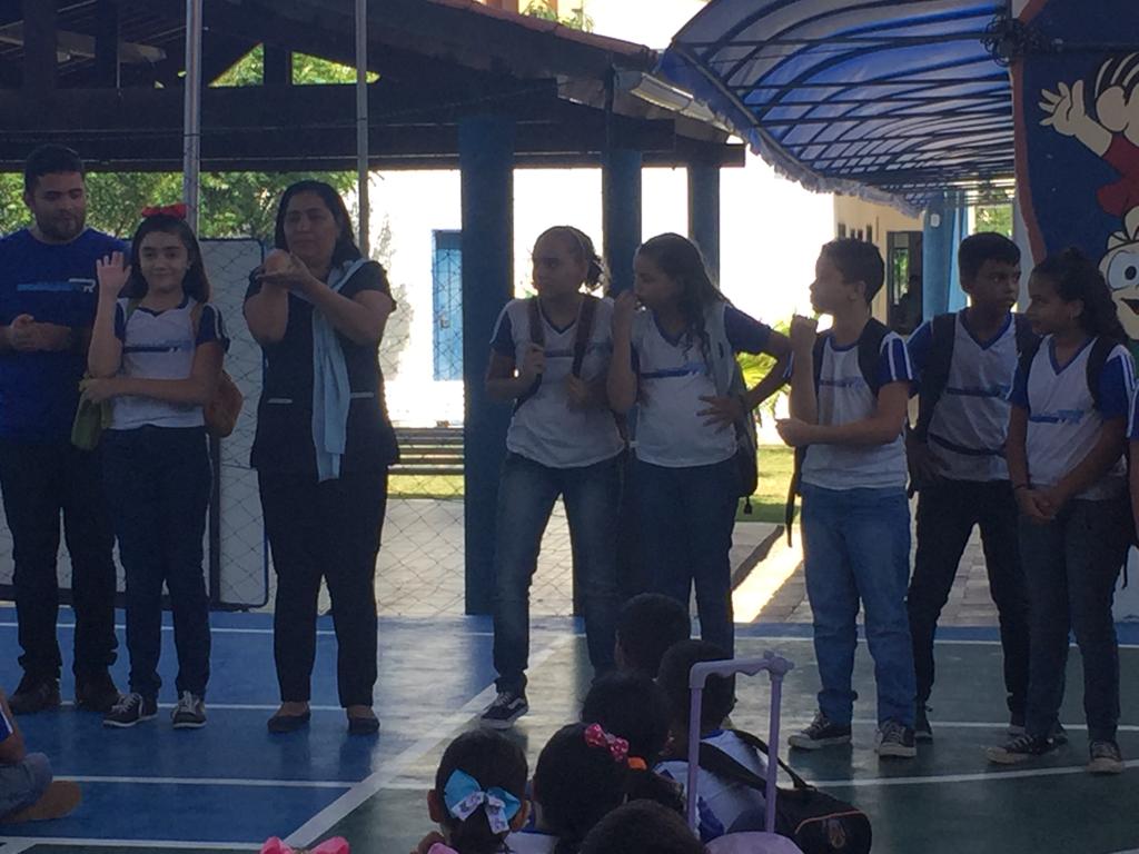 Tudo começou com a ideia dos alunos do 4º semestre da Facine de ensinarem para um grupo de estudantes da Escola Franklin Rooselvelt noções básicas de libras, como: alfabeto, números e saudações. Ontem, a aula se concretizou.