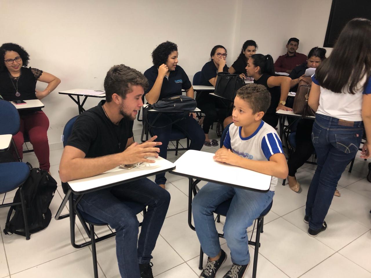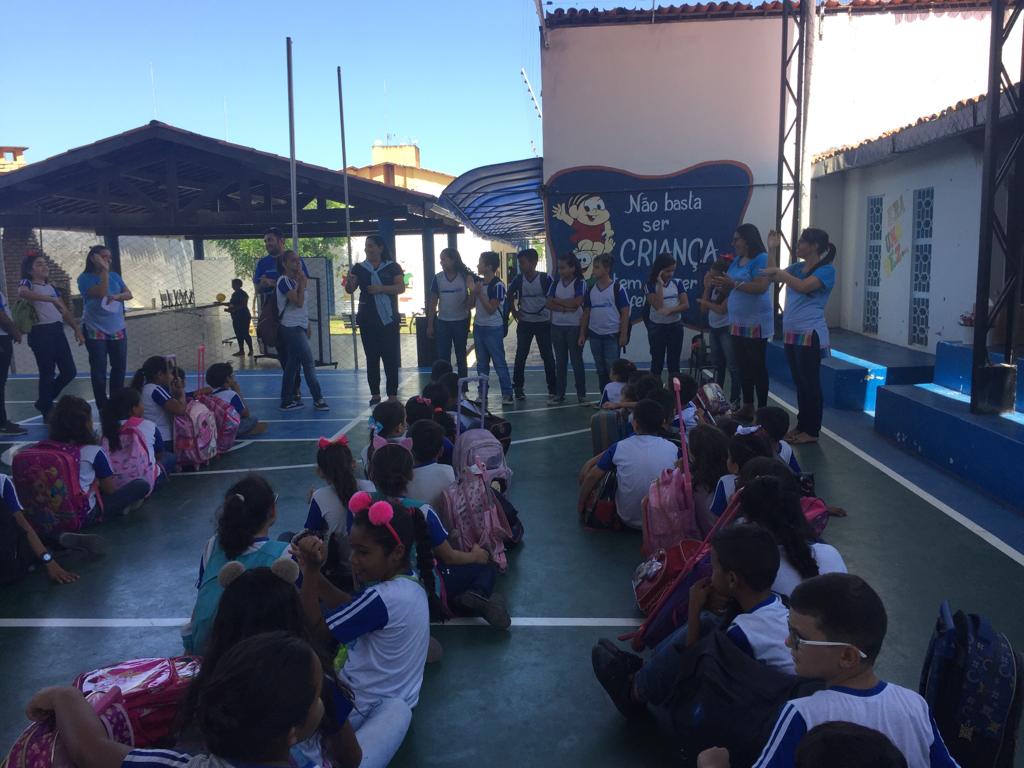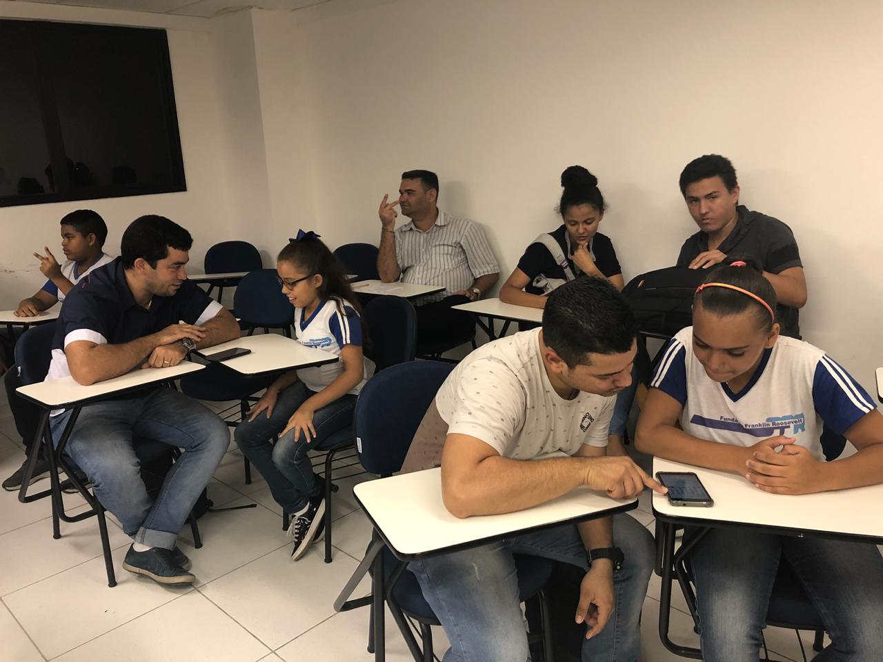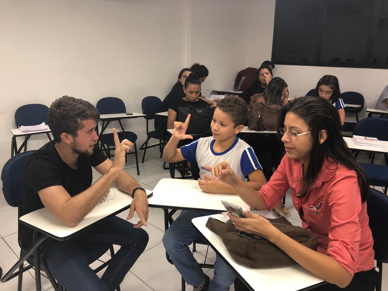 Tudo começou com a ideia dos alunos do 4º semestre da Facine de ensinarem para um grupo de estudantes da Escola Franklin Rooselvelt noções básicas de libras, como: alfabeto, números e saudações. Ontem, a aula se concretizou.